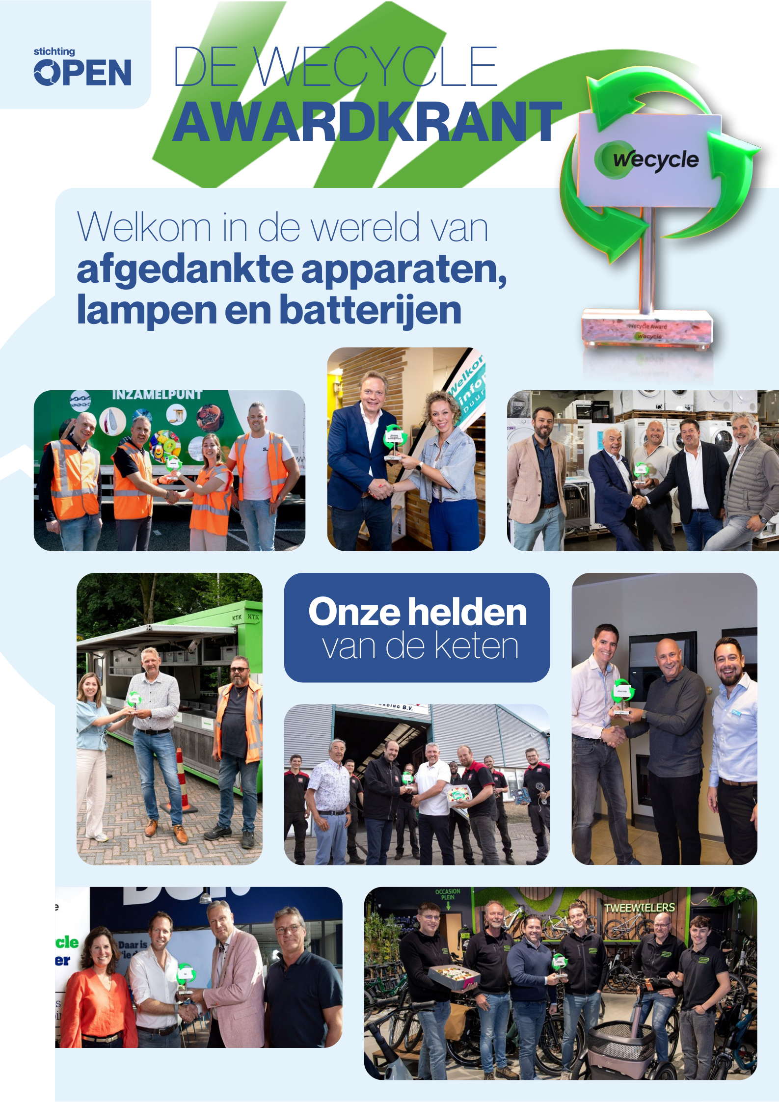 Met trots presenteren we de Wecycle Awardkrant: een uitgave boordevol inspirerende voorbeelden. Van innovatieve inzameloplossingen tot circulaire ondernemers die hergebruik en recycling van afgedankte apparaten, lampen en batterijen naar een hoger niveau tillen.