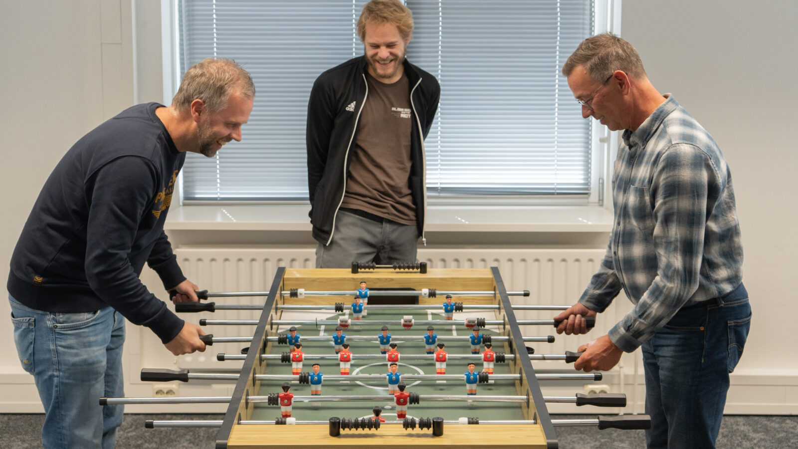En dat doen we samen, niet alleen achter ons bureau. We vieren successen met borrels, een gezellige BBQ of ons jaarlijkse kerstfeest. We drinken koffie met elkaar, spelen een potje tafelvoetbal tussendoor en zorgen dat er ook ruimte is voor plezier. Want impact maken en werkgeluk gaan bij ons hand in hand.